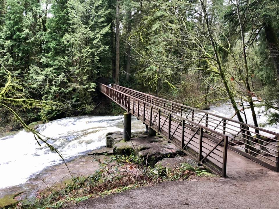 In the winter, there is a lot of water flowing through Lacamas Park and over Lower Falls, which makes it really cool to hike to the falls this time of year. Between the pretty forest, the downed logs that are perfect for climbing, the wide stroller-friendly trail, and the bridge over the rushing creek, it’s a fantastic place to hike with kids. My favorite part of the trail, though, is the rocks. Did you know they are millions of years old? Learn more about that in my book.