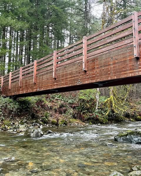 I love hiking at Wildwood Recreation Area on a rainy day! This awesome BLM recreation area has several miles of flat, kid-friendly trails (most of which are paved or boardwalk) and is located on the west slope of Mt. Hood. This spot is at about 1,200 feet, which means that it should stay snow-free most of the winter. When visiting, be sure to check out the relief map, the river beach, the naturalist exhibits on the boardwalk, and the awesome nurse logs along the paths. FYI, some of the boardwalks can be slippery when wet! There is a fee to park.